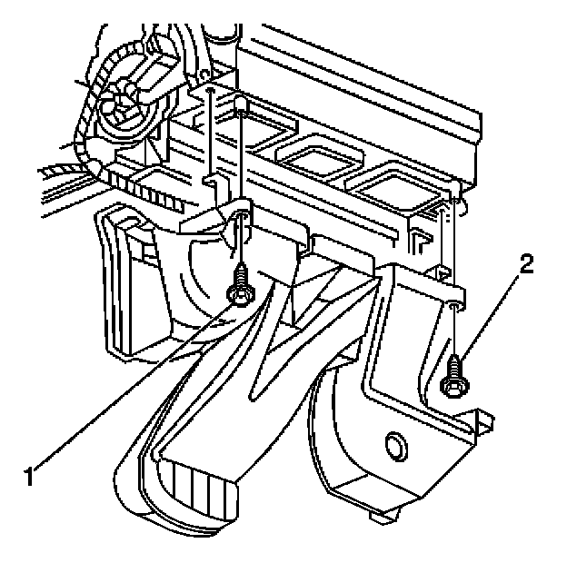 8. Install the air distributor duct left side screw (1). Ensure the right tab is seated properly.