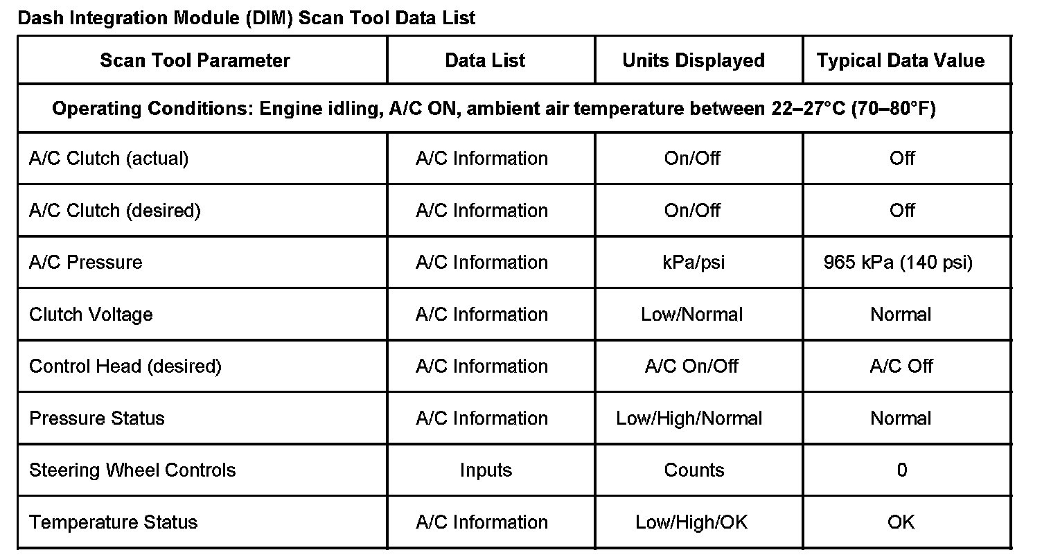 SCAN TOOL DATA LISTDash Integration Module (DIM) Scan Tool Data List: