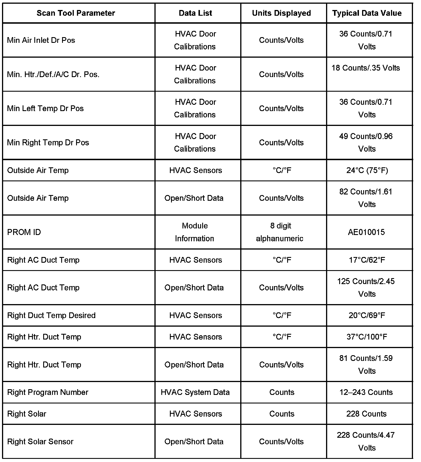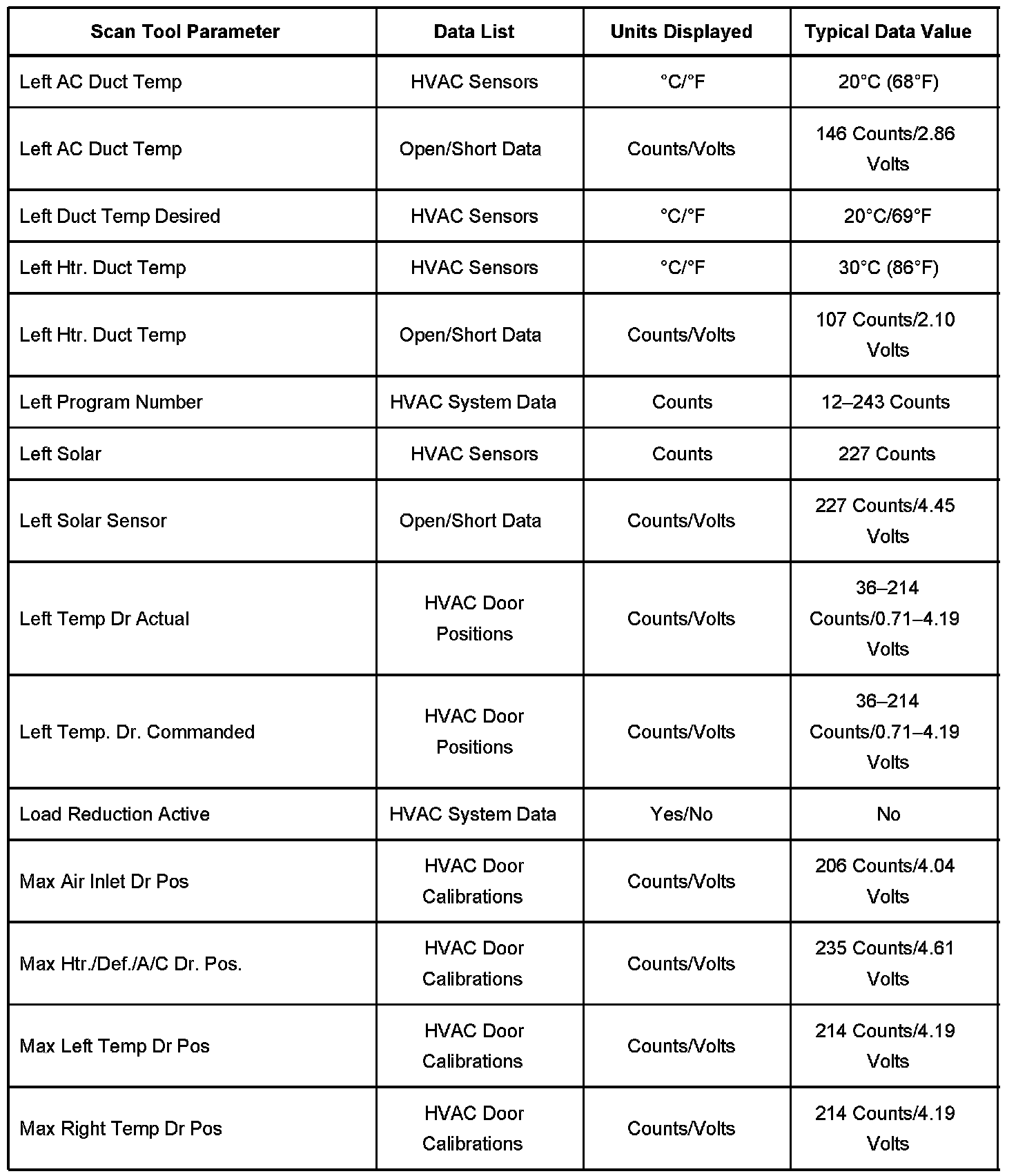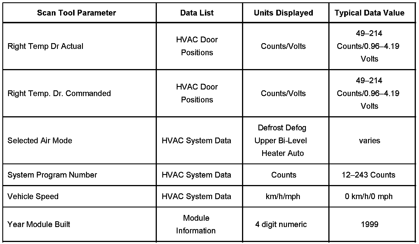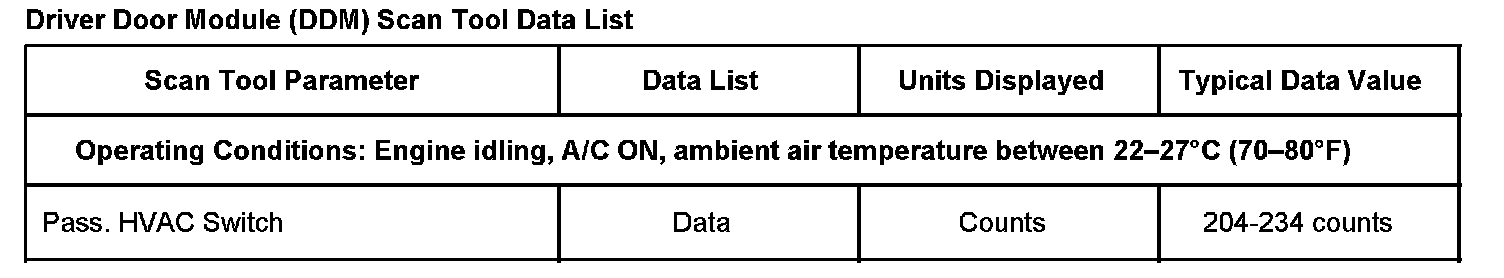 Driver Door Module (DDM) Scan Tool Data List: