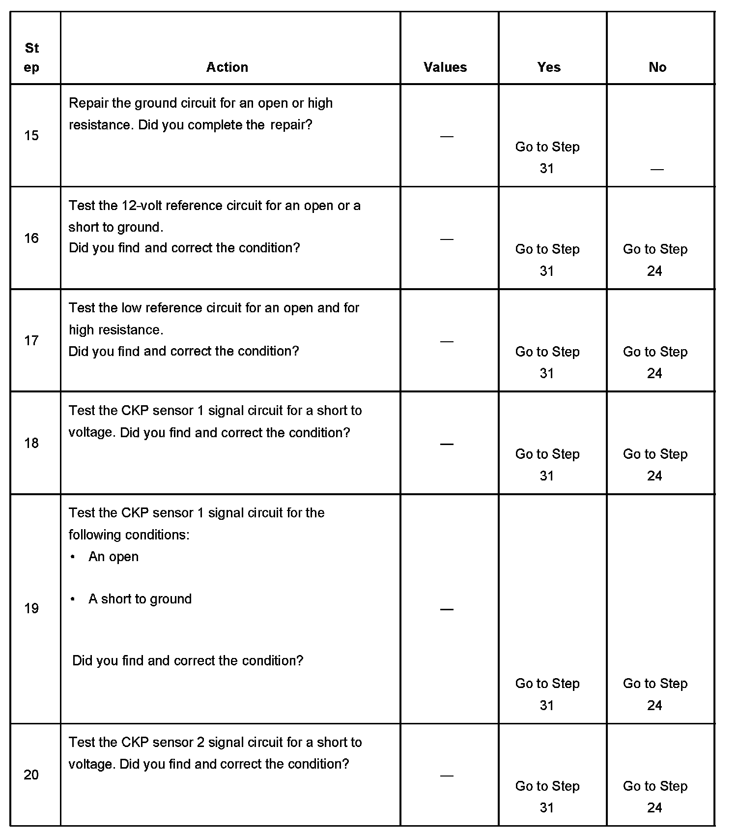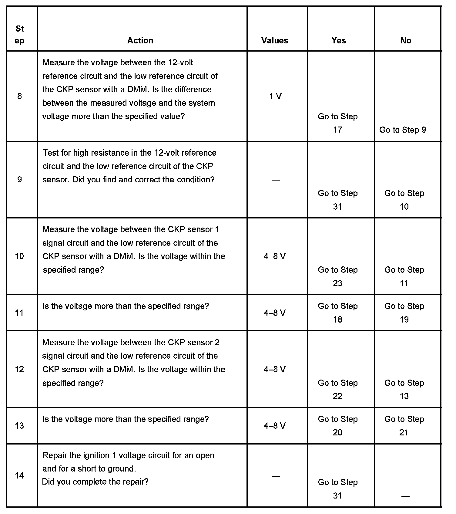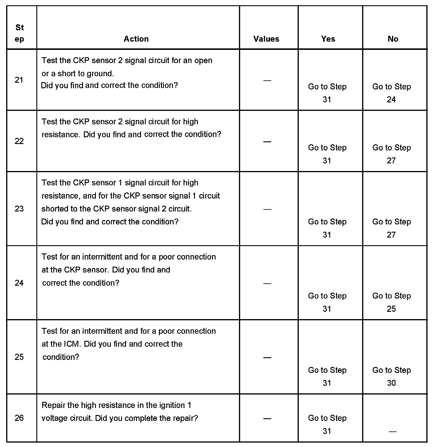 - A CKP sensor 1 signal circuit