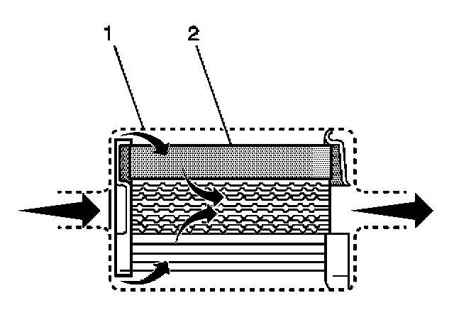The fuel filter is located on the fuel feed pipe, between the fuel pump and the fuel injectors. The paper filter element (2) traps particles in the fuel that may damage the fuel injection system. The filter housing (1) is made to withstand maximum fuel system pressure, exposure to fuel additives, and changes in temperature. There is no service interval for fuel filter replacement. Replace a restricted fuel filter.