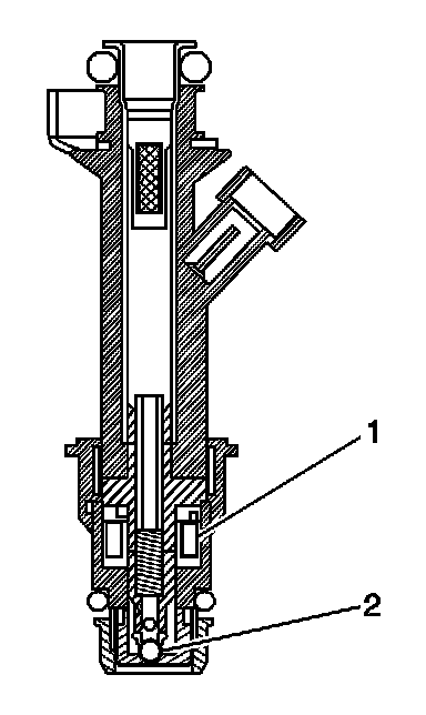 The Multec 2 fuel injector assembly is a solenoid operated device, controlled by the PCM, that meters pressurized fuel to a single engine cylinder. The PCM energizes the high-impedance (12.0 ohms) injector solenoid (2) to open a normally closed ball valve (3). This allows fuel to flow into the top of the injector, past the ball valve, and through a director plate at the injector outlet. The director plate has four machined holes that control the fuel flow, generating a spray of finely atomized fuel at the injector tip. Fuel from the injector tip is directed at the intake valve, causing the fuel to become further atomized and vaporized before entering the combustion chamber. An injector stuck partly open can cause a loss of pressure after engine shutdown. Consequently, long cranking times would be noticed on some engines.