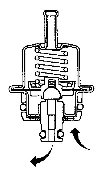 The fuel pressure regulator is a vacuum operated diaphragm relief valve with fuel pump pressure on one side and regulator spring pressure and intake manifold vacuum on the other side. The fuel pressure regulator maintains a constant pressure differential across the injectors at all times. The pressure regulator compensates for engine load by increasing fuel pressure as the engine vacuum drops.