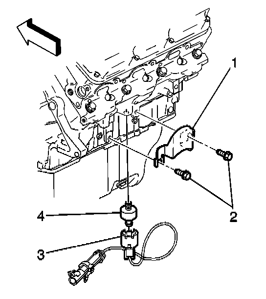 1. Install the knock sensor (2) into the engine block (1).