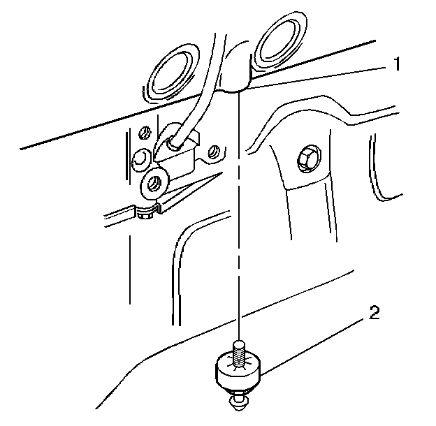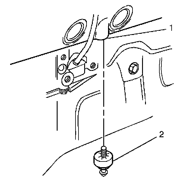 7. Remove the knock sensor (2) from the engine block (1).