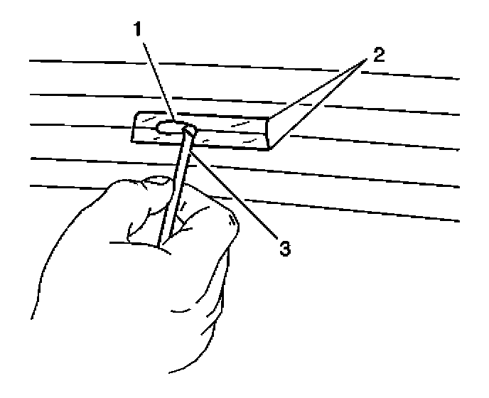 2. Use the brush (3) in order to spread the grid line repair material (1). Ensure that the repair material covers all of the areas of the cut out.