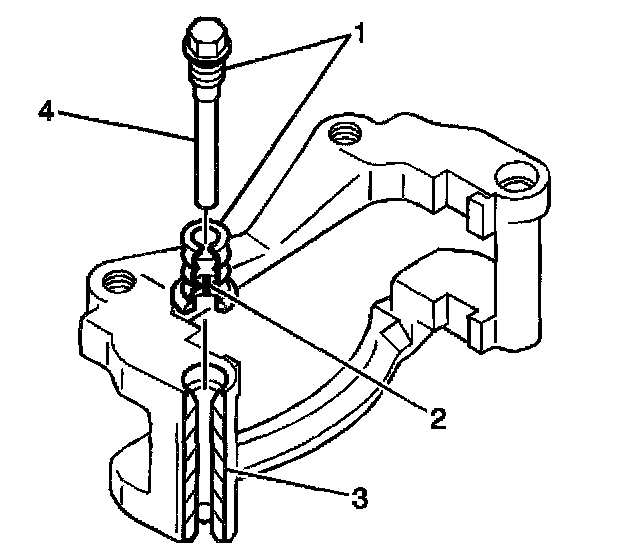 4. Install the brake pad retainers (1) to the caliper bracket.