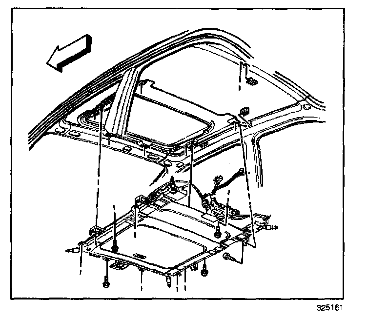 9. Remove the sunroof module at the actuator bracket bolt (center rear)