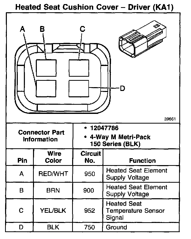 Heated Seat Back Element - Driver (With RPO Code KA1):