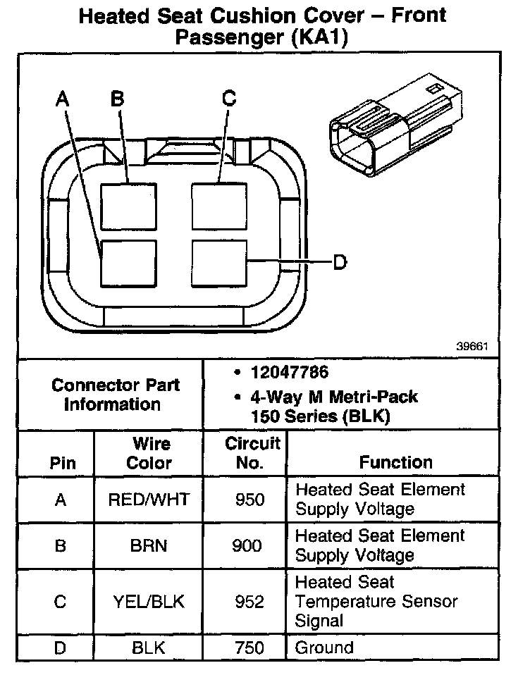Heated Seat Cushion Cover - Front Passenger ((With RPO Code KA1):