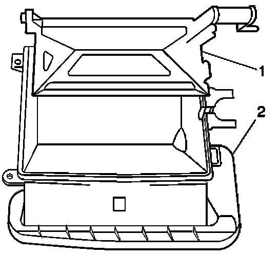 2. Align the retaining tabs and install the recirculation housing (2) to the HVAC module assembly.