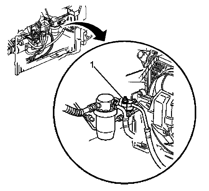 4. Remove the A/C compressor hose nut (1).