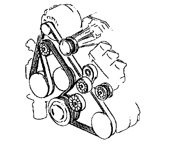 All driven accessories rigidly mount to the engine. Spring-loaded belt tensioners maintain the drive belt tension. Each drive belt has its own tensioner. A drive belt squeak, occurring when the engine starts or stops, is normal and has no effect on the durability of the drive belt. The drive belt tensioner can control the drive belt tension over a broad range of drive belt lengths, due to stretching. However, there are limits to the tensioner's compensation ability. Poor tension control and/or damage to the tensioner may occur after using the tensioner outside of its operating range. Replace the drive belt when this occurs.