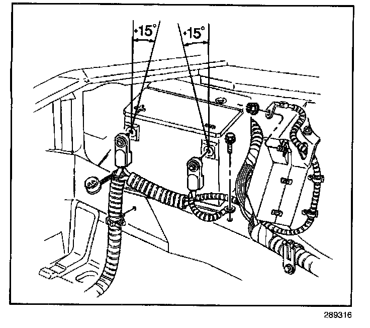 16. Remove the negative battery cable from the wiring harness conduit.