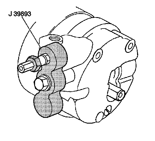 1. With the sealing washers in place, install the J 39893 on the rear head of the compressor.
