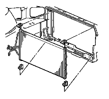 8. Tilt the top of the condenser to the rear of the vehicle and lift up to remove the condenser.