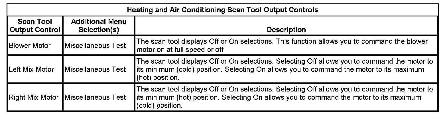 Heating And Air Conditioning Scan Tool Output Controls: