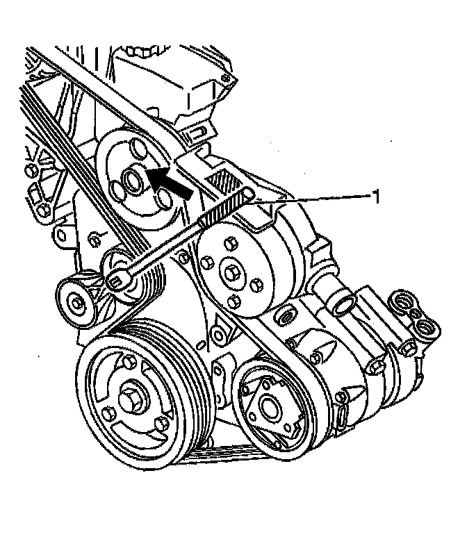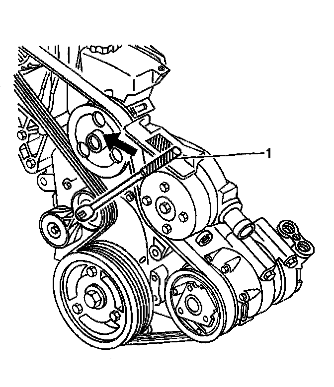 1. Remove the drive belt tensioner by lifting or rotating the drive belt tensioner off of the drive belt, using a 3/8 inch breaker bar (1).