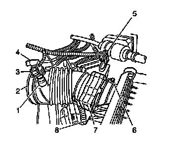 Tighten the clamps (2, 6) to 2 N.m (18 lb in).
