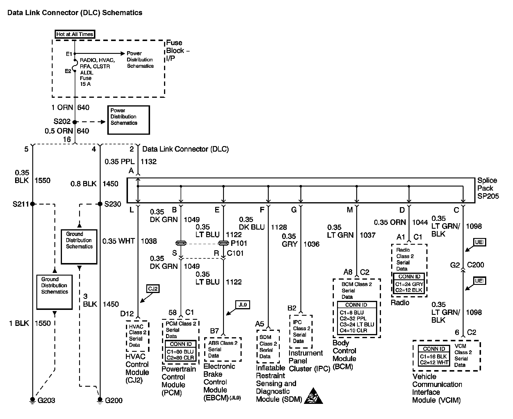 The locations for the Connectors, Grounds, Splices, and Grommets shown within these diagrams can be found via their at Vehicle Locations.