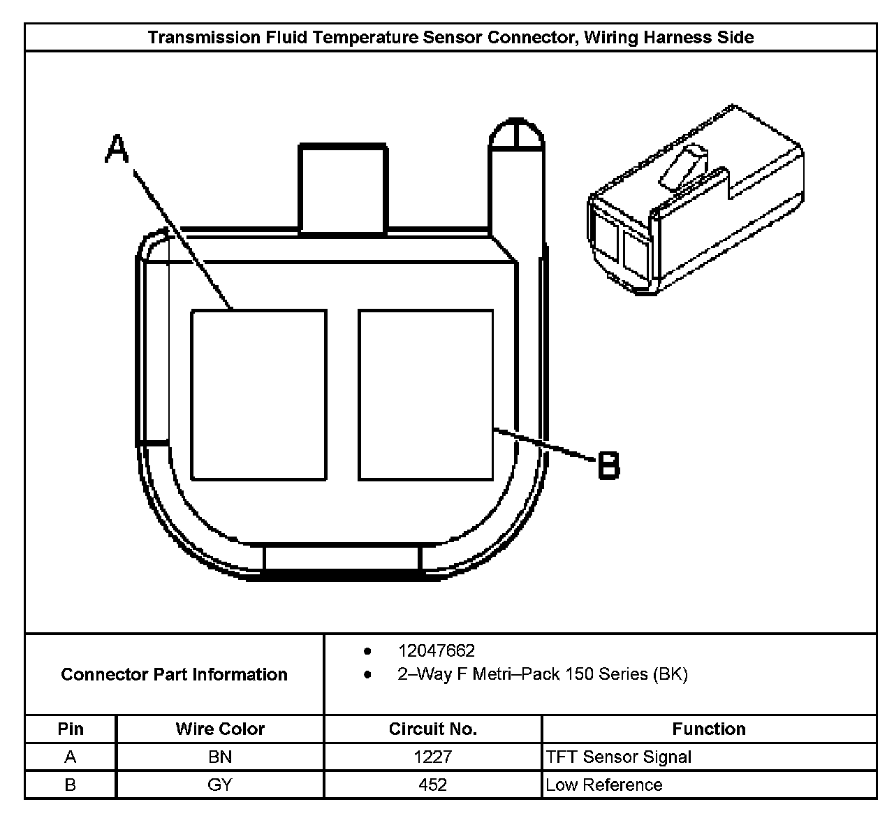 Transmission Fluid Temperature Sensor Connector End View, Wiring Harness Side: