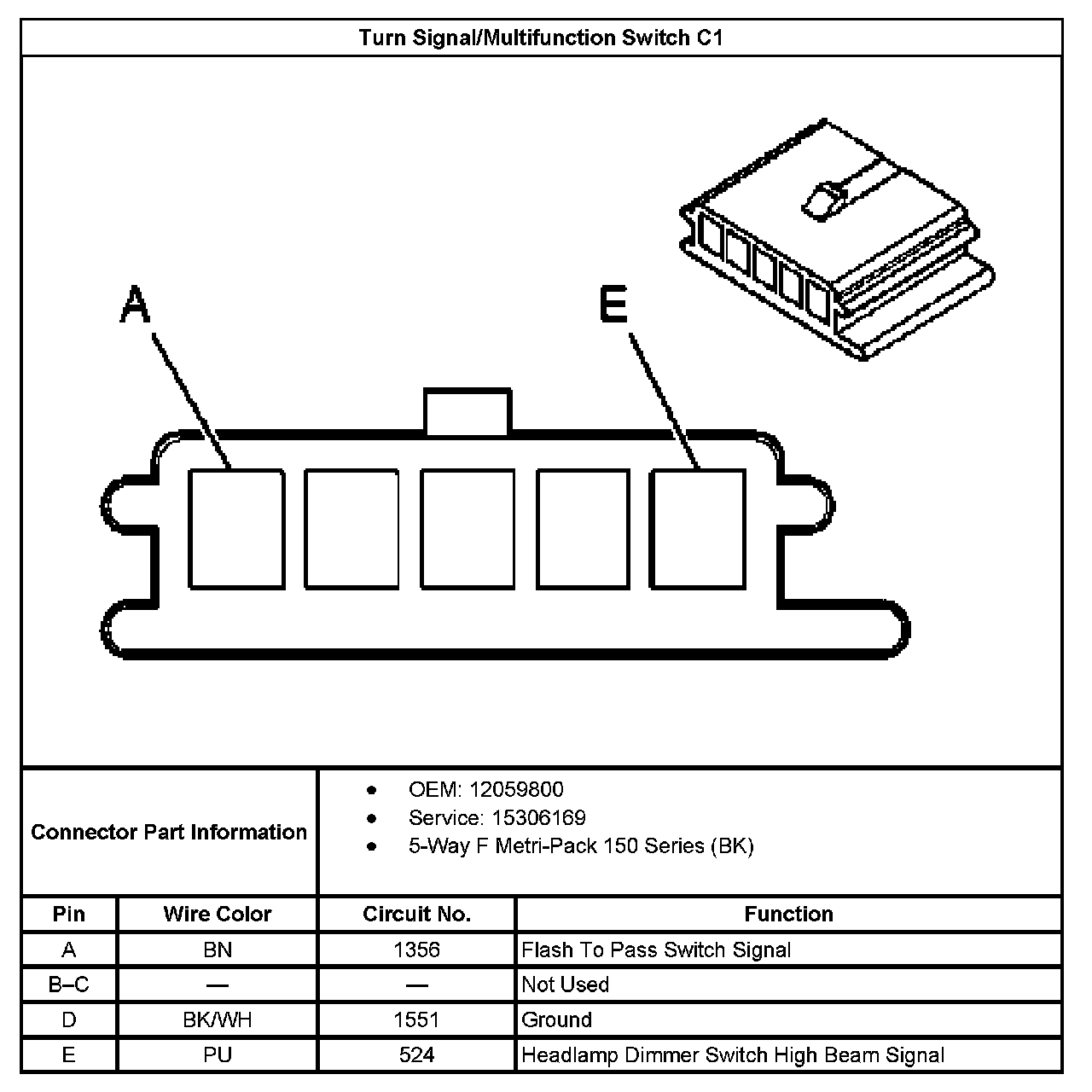 Turn Signal/Multifunction Switch C1: