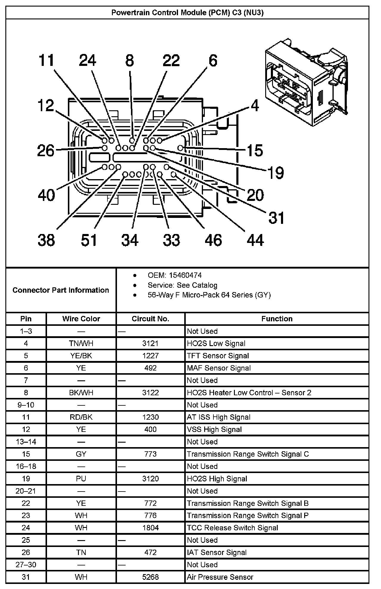 Powertrain Control Module (PCM) C3 (Without RPO Code NU3) Part 1: