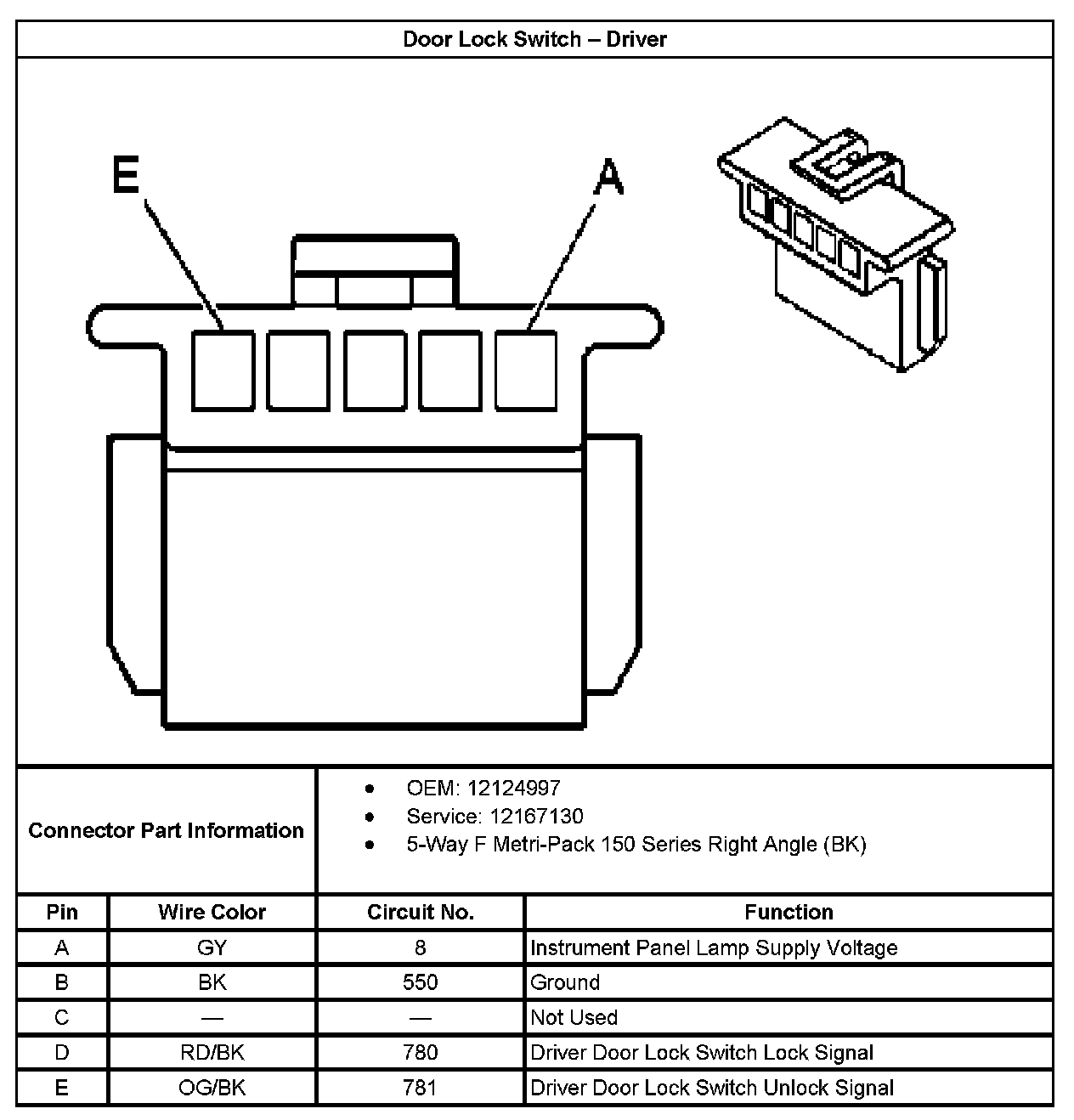 Door Lock Switch - Driver: