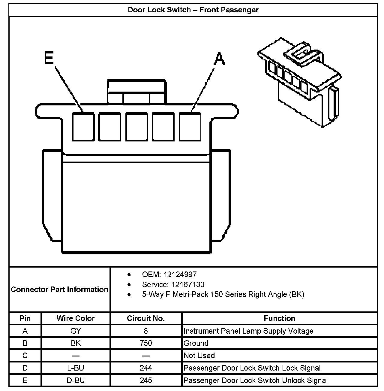 Door Lock Switch - Front Passenger: