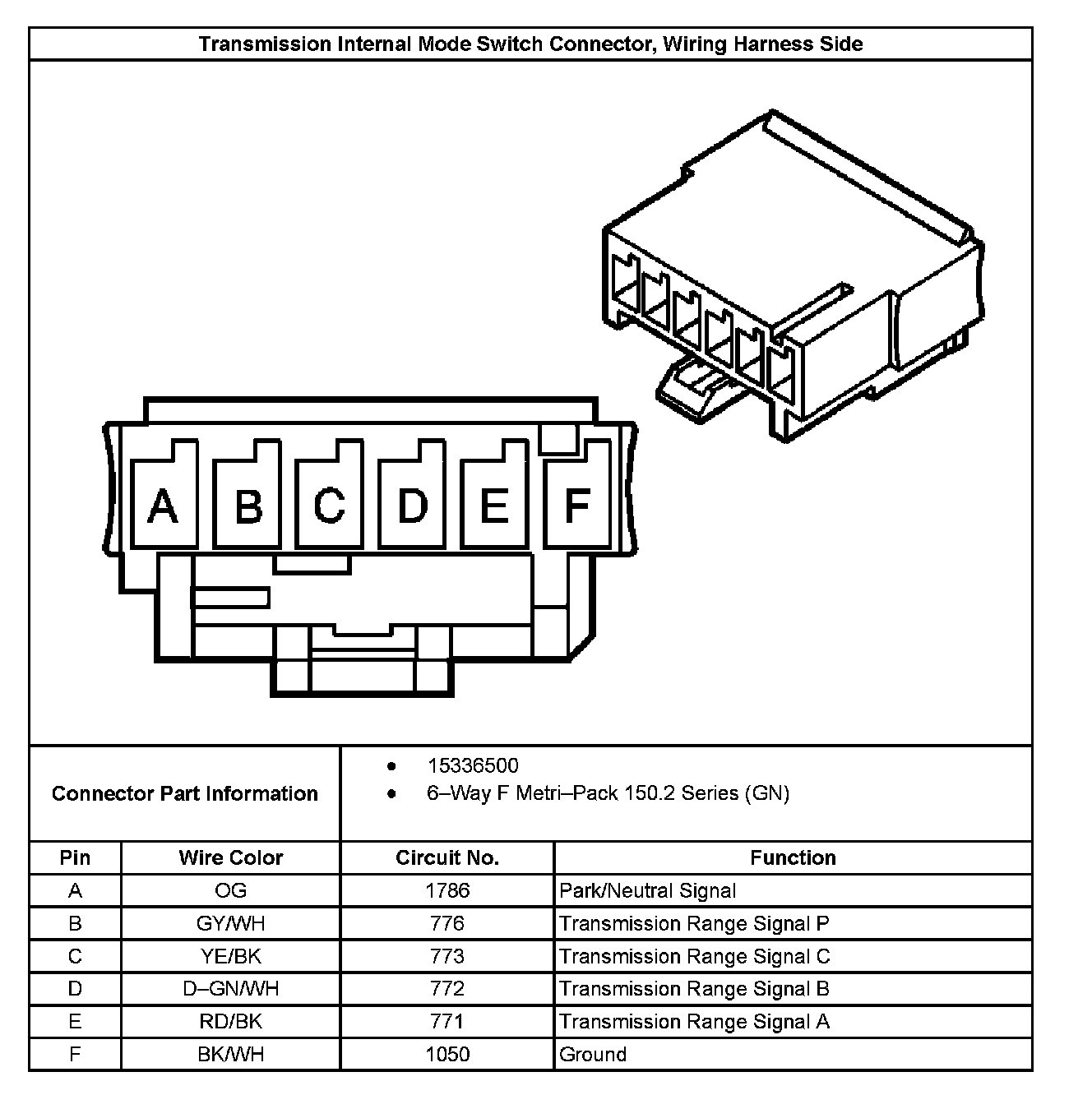 Transmission Internal Mode Switch Connector End View, Wiring Harness Side: