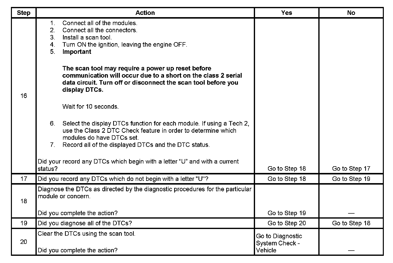 17. If there are no current DTCs that begin with the letter "U", the communication concern has been repaired.