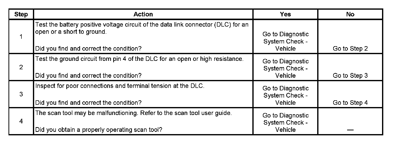 4. If the battery positive voltage and ground circuits of the DLC are functioning properly. The malfunction must be due to the scan tool.