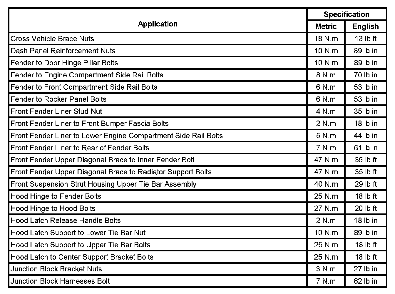 Fastener Tightening Specifications