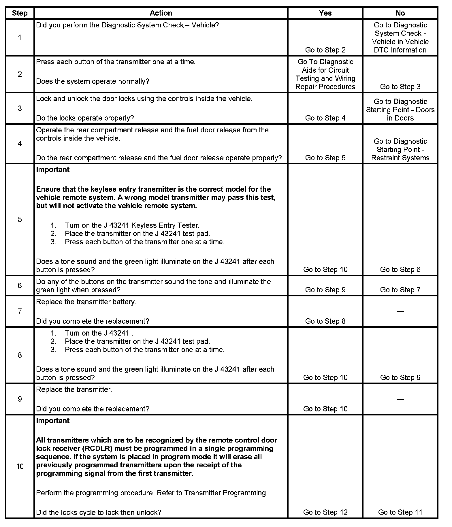 Keyless Entry System Inoperative