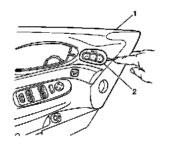 1. Use a small flat bladed tool in order to gently pry the memory seat switch (2) out of the door trim panel (1).