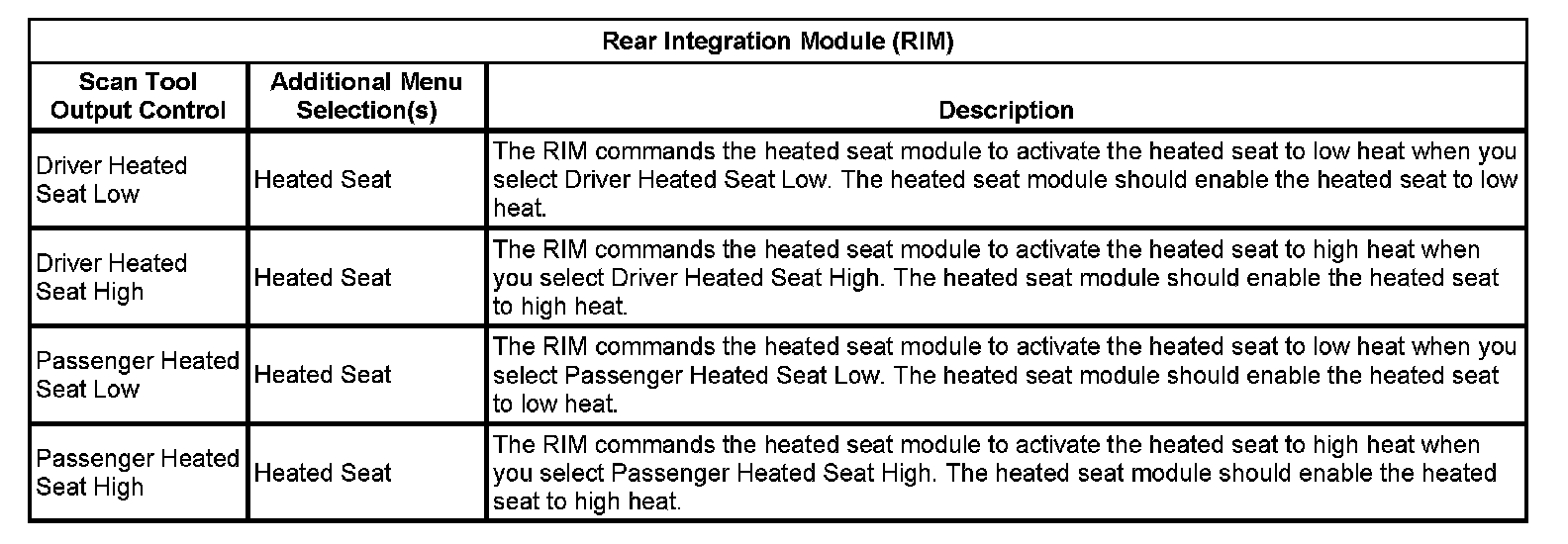 Scan Tool Output Controls - Rear Integration Module (RIM)