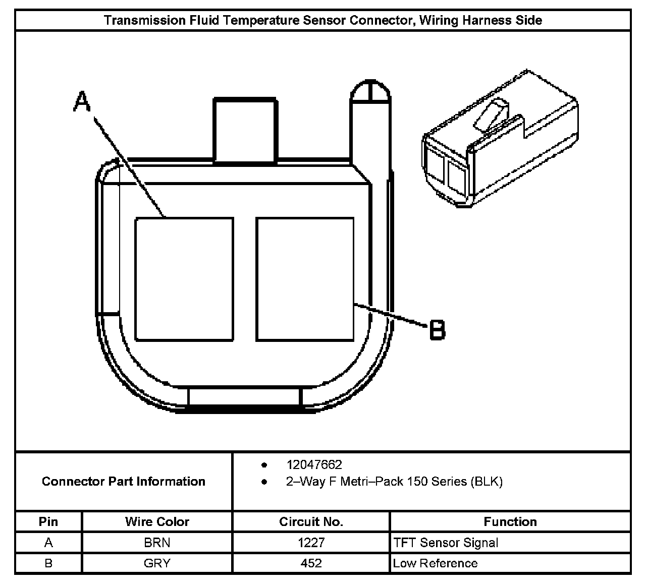 Transmission Fluid Temperature Sensor Connector, Wiring Harness Side: