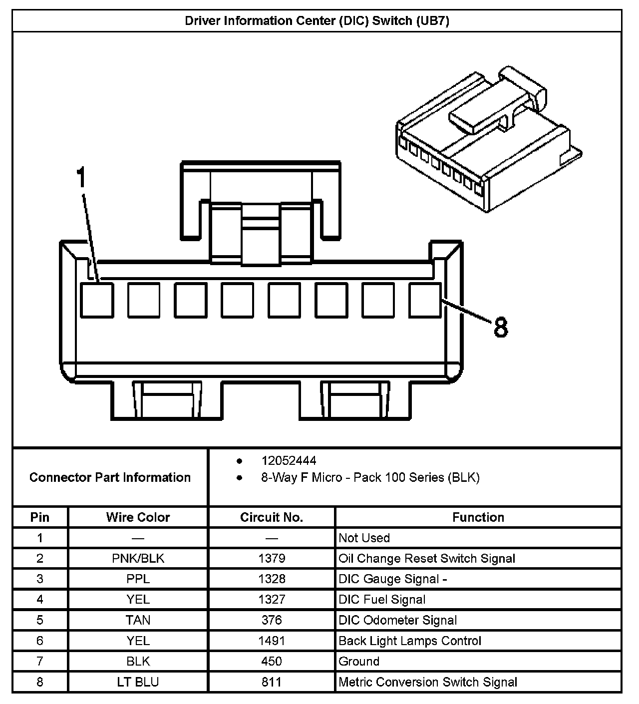 Driver Information Center (DIC) Switch (With RPO Code UB7):