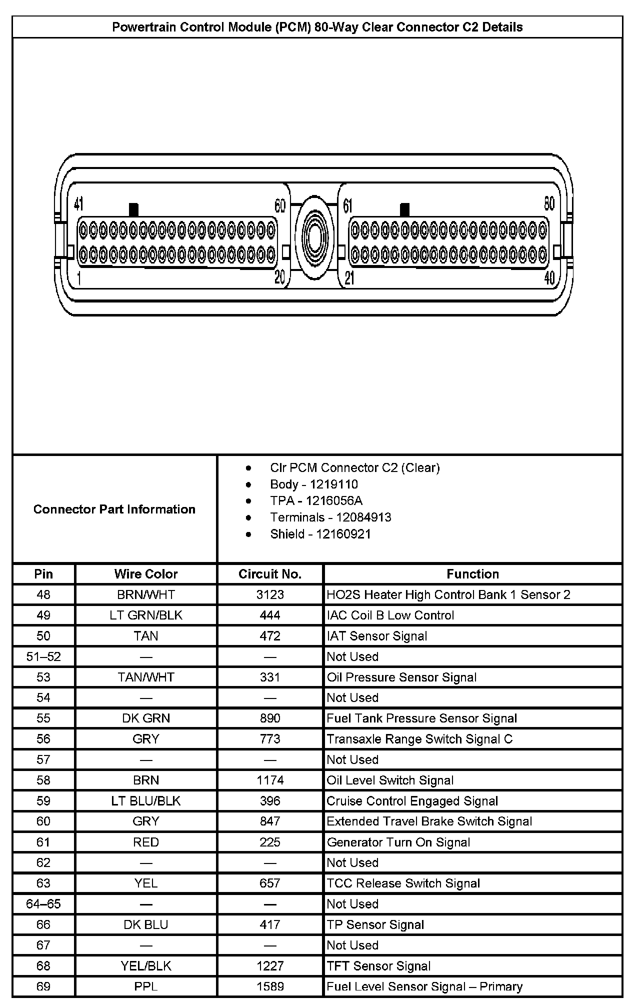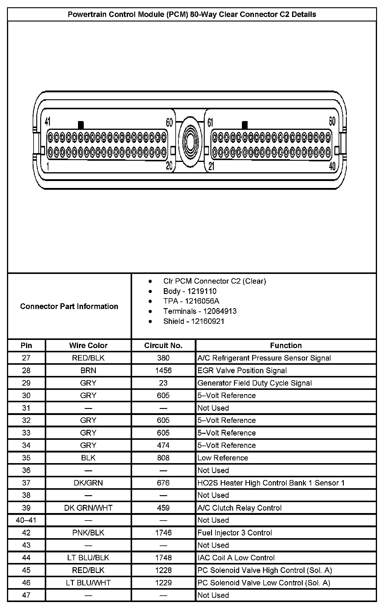 Powertrain Control Module (PCM) 80-Way Clear Connector C2 Details Part 1: