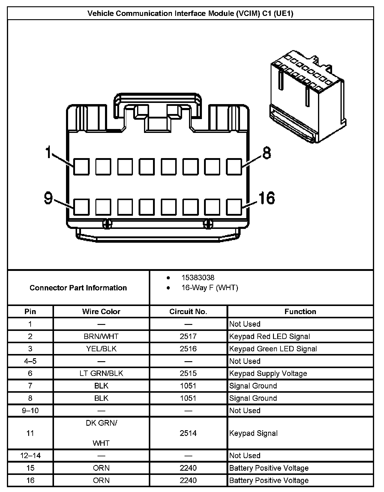 Vehicle Communication Interface Module (VCIM) C1 (With RPO COde UE1):