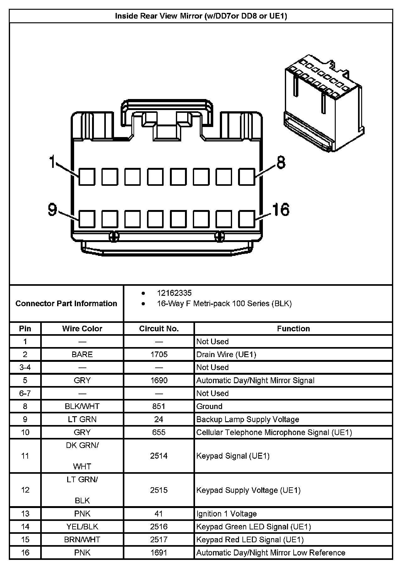 Inside Rear View Mirror (With RPO Code DD7 Or DD8 Or UE1):