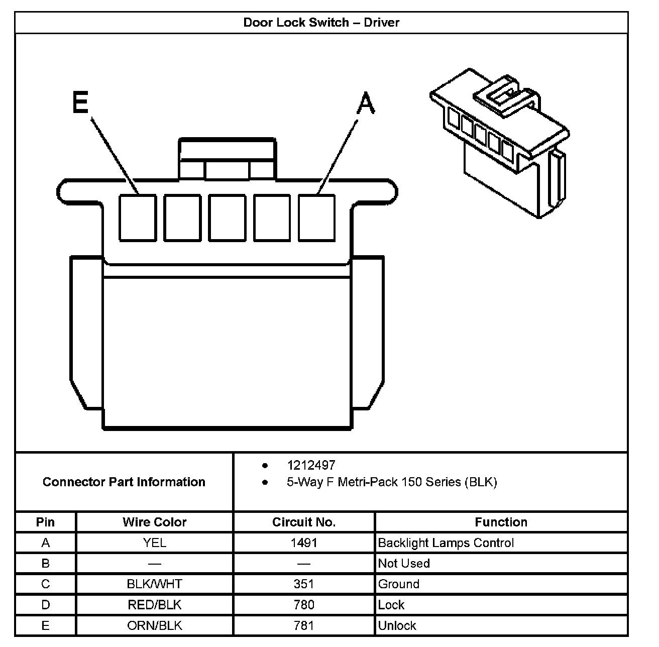 Door Lock Switch - Driver: