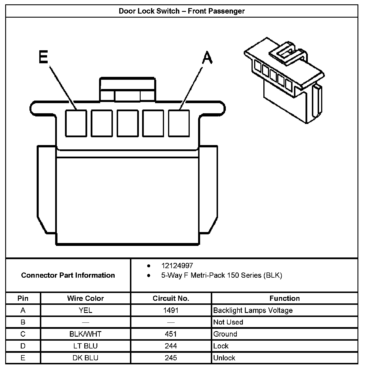 Door Lock Switch - Front Passenger: