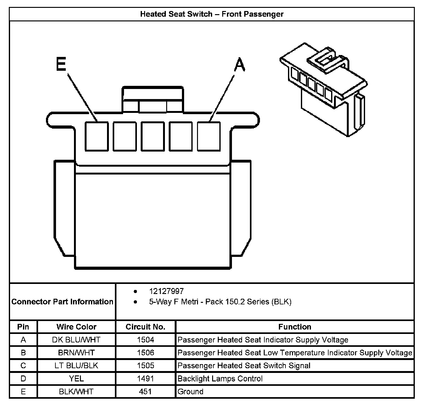 Heated Seat Switch - Driver (With RPO Code KA1):
