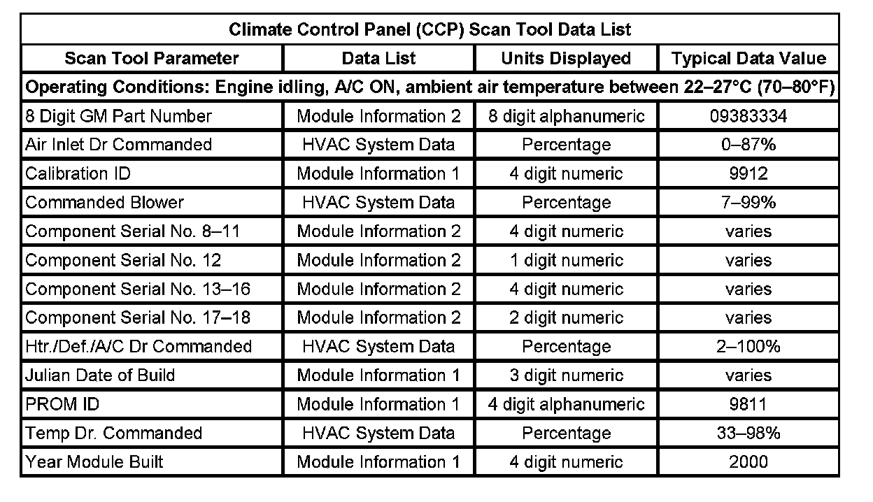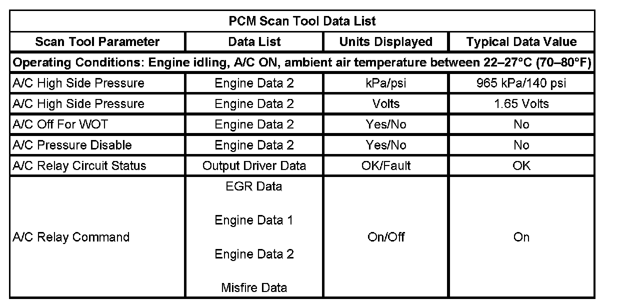 The scan tool data values were taken from a known good vehicle under the following conditions: