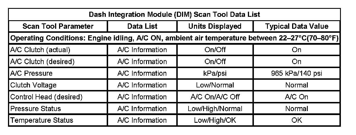 Use the Scan Tool Data Display Values and Definitions Information in order to assist in diagnosing the Instrument Panel Integration Module (IPM) problems. Compare the vehicles actual scan tool data with the typical data display value table information. Use the data information in order to aid in understanding the nature of the problem when the vehicle does not match with the typical data display values.