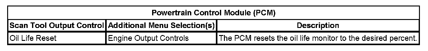 Scan Tool Output Controls - Powertrain Control Module (PCM)