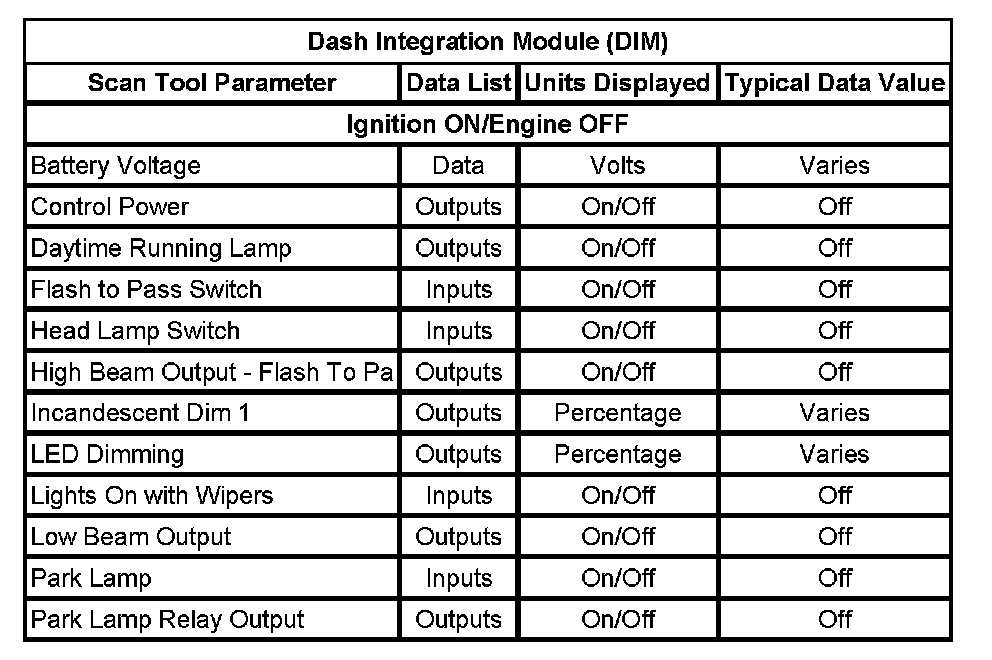 Scan Tool Data List - Dash Integration Module (DIM)