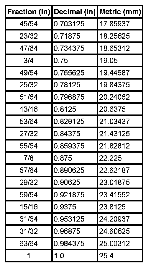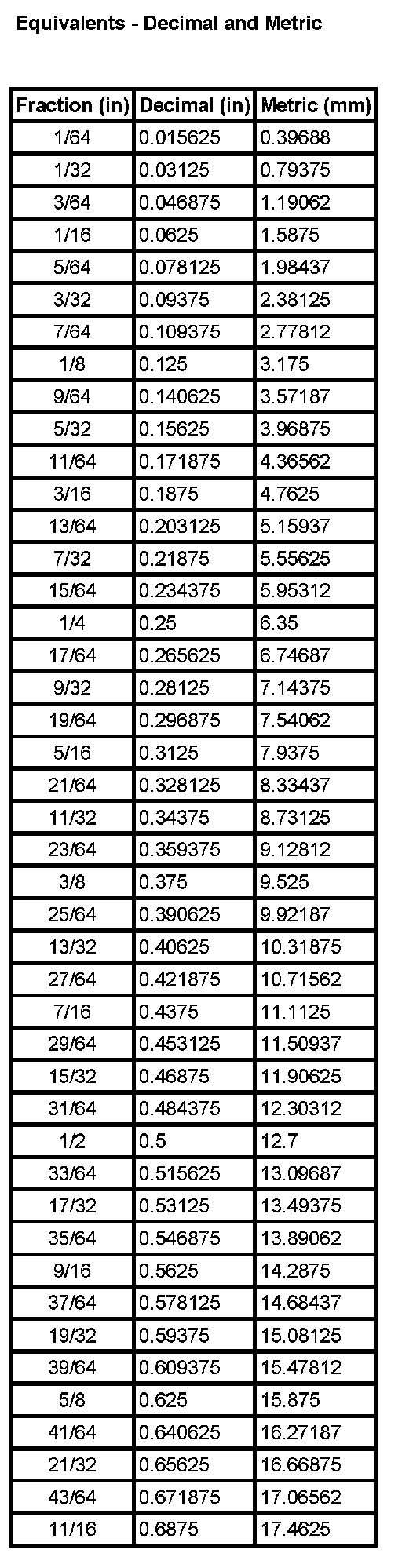 Equivalents - Decimal And Metric