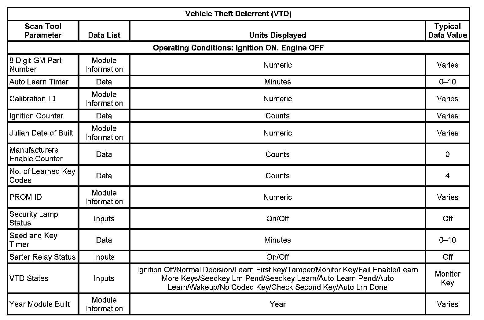 Scan Tool Data List - Antitheft System